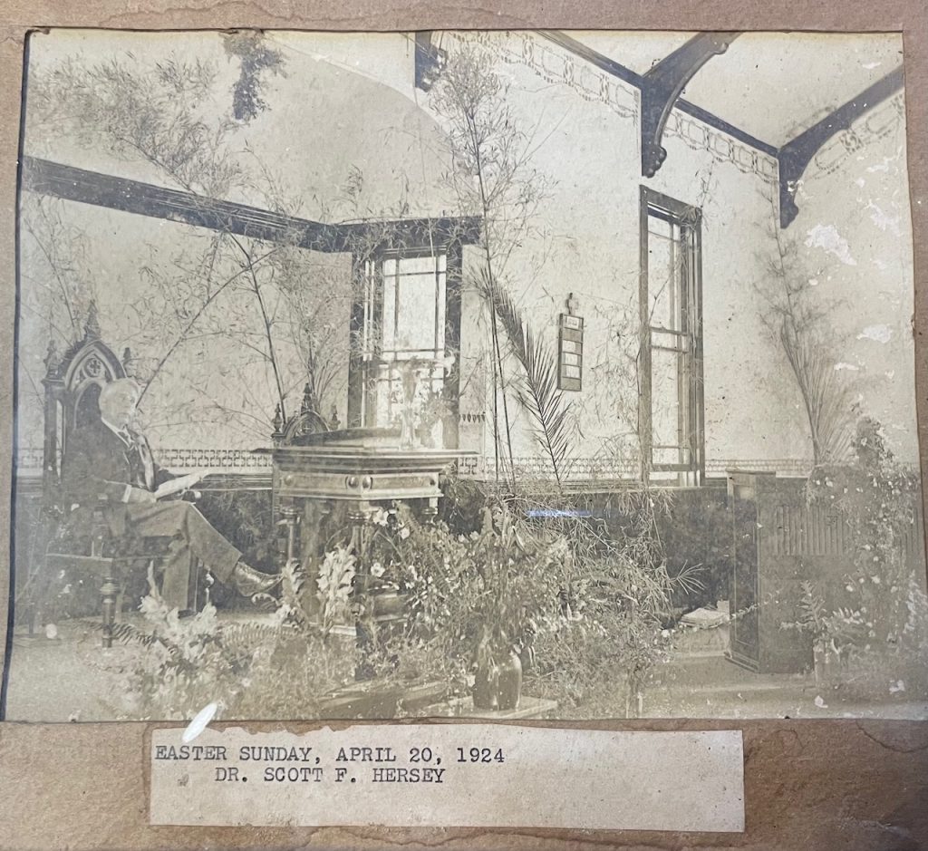 On April 8, 1888, the doors to the new church were opened. Architect J.P. Mace was hired to construct the building on the pine covered lot at the corner of Euclid and Main Street. Mr. Mace was the first mayor of Lake Helen and a member of this congregation. The cost, including the spire, was $2,850. The church’s gingerbread trim is reminiscent of New England. The building not only served as a place of worship, but also as a public meeting place.